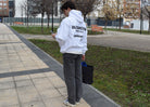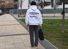Tanto nuestras sudaderas como las crewnecks están diseñadas con un corte Oversized desarrollado internamente para ofrecer una silueta única. Este patrón exclusivo presenta una estructura amplia tanto en hombros como en el cuerpo, con costuras caídas y mangas generosas que forman pliegues a lo largo del brazo, aportando un estilo distintivo.